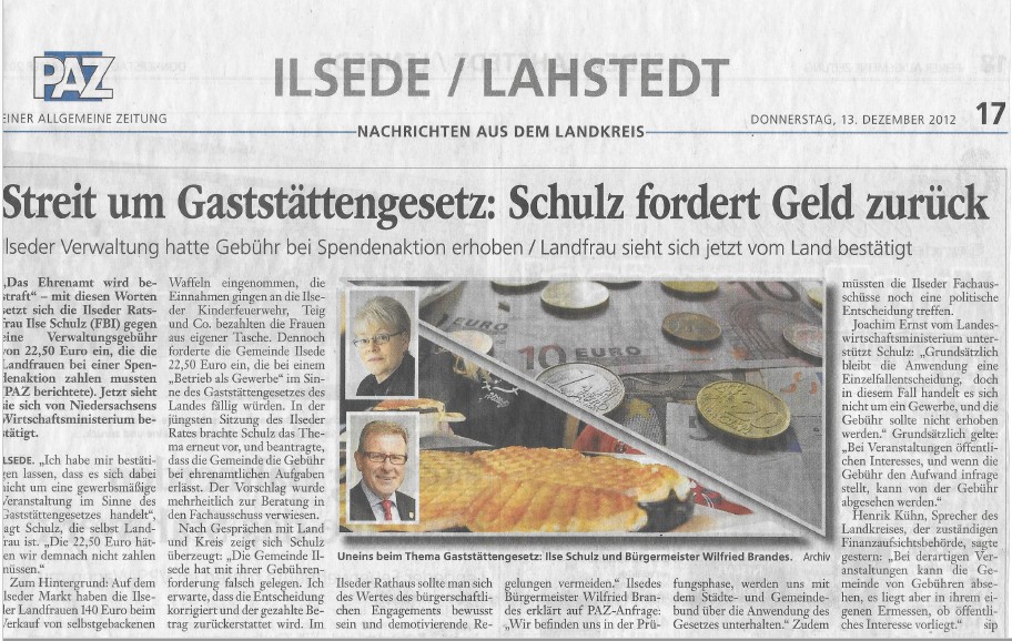 Aktuelles Presse Ehrenamt und Vereine Streit um Gaststättengesetz: Schulz fordert Geld zurück