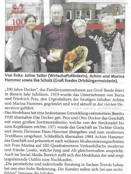 Textil-Decker feiert 100-jähriges Jubiläum